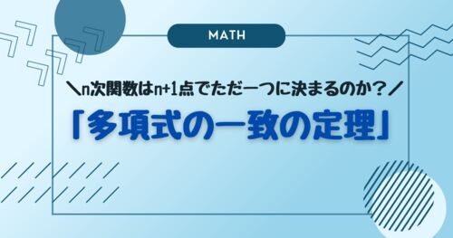 今回はシリーズ物から離れまして、〇次関数と書かれるものについて考えます。 高校数学で初めて学ぶ関数といえば2次関数です。 2次関数を学ぶ上で練習問題として出てくるのが「3点が与えられ、その3点を通る放物線の式を答える問題」です。 2次関数の話から …
