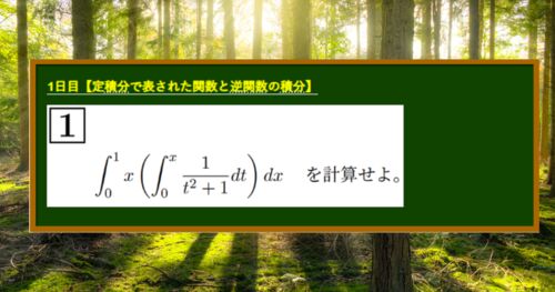 少し癖がある実戦的な問題をXで毎日更新している1日1問。 記念すべき1日目は定積分で表された関数の定積分です。 「積分区間に変数xを含むときの対処法」「隠された逆関数」という視点から2つの解法を紹介します。